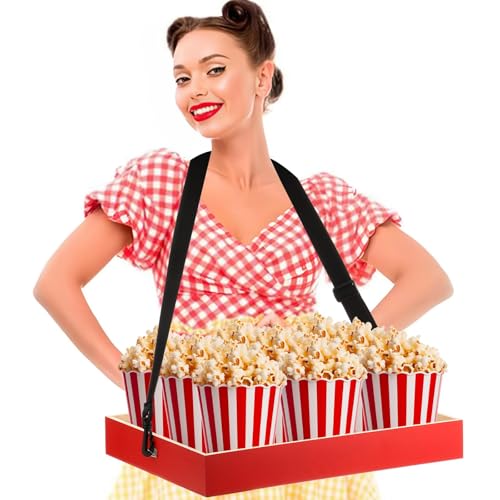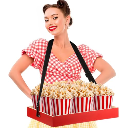 Wearable Party Black Tray Snack and Beverage Carrier Foldable Drink Carriers Movie Snack Usherette Vendor Trays with Strap Halloween Costume Accessory Tray,3.2 x 11.1 x 12 Inche (R-2 Pcs)