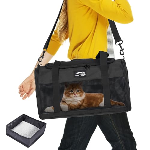 TSA Approved Pet Carrier for Small Cats and Puppies, Soft-Sided and Foldable, Cat and Dog Carrier Fits Pets Up to 15 lbs, Durable Portable Travel Bag with Litter Box (Black, Litter Box & Leash Set)