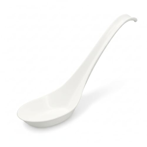 50pcs Eco-Friendly Disposable Asian Soup Spoons with Hook – Made from Plant-Based Cornstarch, Ideal for Ramen, Pho, Noodle Bowls, Takeout