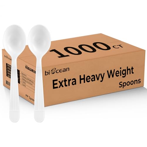 Plastic Spoons 1000 Count Extra Heavy Duty Disposable Soup Spoon White Silverware Plastic Spoons Disposable Bulk Cutlery for Home Party Picnic