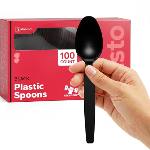 Comfy Package [100 Pack] Basic Black Plastic Spoons, Heavy Duty Disposable Utensils - Perfect for Parties, Events, and Dinner