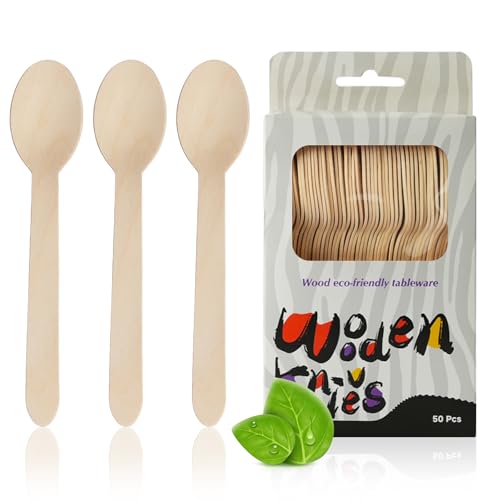 50 Pcs Disposable Wooden Spoons, 6.3 Inch Wooden Cutlery Spoon Disposable Spoons Wood Spoons, Eco-friendly Biodegradable Compostable Utensils for Party, Camping, Traveling, Family Dinners
