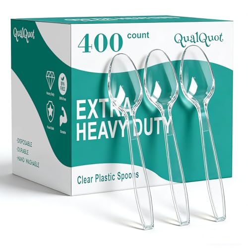 400 Count Heavy Duty Clear Plastic Spoons, Solid and Durable Disposable Spoons, BPA-Free and Heat Resistant, Premium Disposable Spoon for Daily Use and Party
