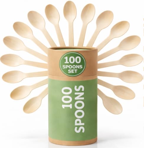 (100 Count) Disposable Wooden Spoons Set - Alternative to Plastic, Eco Friendly, Biodegradable, Compostable Cutlery Set - 100 Wood Spoons Disposable Set