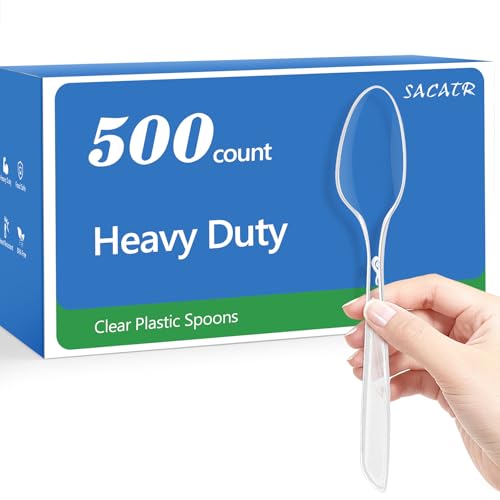 SACATR 500 Count Heavy Duty Clear Plastic Spoons,BPA-Free,Heat Resistant Disposable Plastic Spoons Bulk, Solid Durable Premium Cutlery for Parties, Events and Everyday Use