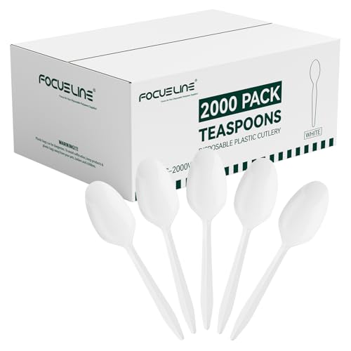 FOCUSLINE 2000 Pack White Plastic Spoons Bulk, Heat Resistant Disposable Teaspoons, Plastic Silverware for Take out Restaurants, Parties, Picnics, Travel & Any Events