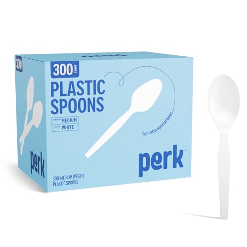 Perk Medium‑Weight Plastic Spoons, 300 Count Bulk Disposable Spoons for Everyday Meals & Desserts, White