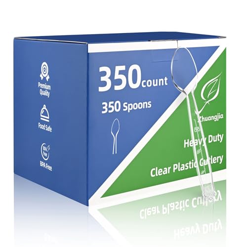 350 Count Clear Plastic Spoons, Extra Heavy Duty Plastic Spoons, Premium Disposable heavy duty spoons Set, BPA-Free Heat Resistant utensils for Party Supplies, Weddings and Everyday Use