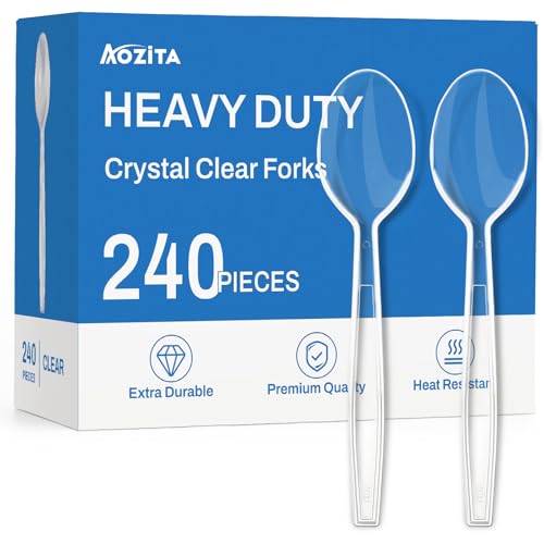 240 Count Extra Heavy Duty Clear Plastic Spoons, Solid and Durable Premium Disposable Spoons - BPA-Free & Heat Resistant Plastic Cutlery Utensils for Parties, Events and Everyday Use