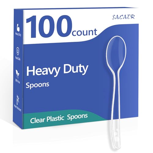 SACATR 100 Count Plastic Spoons,Heavy Plastic Silverware,Premium Disposable Spoons, BPA-Free, Heat Resistant, Suitable for Parties, Events and Everyday Use