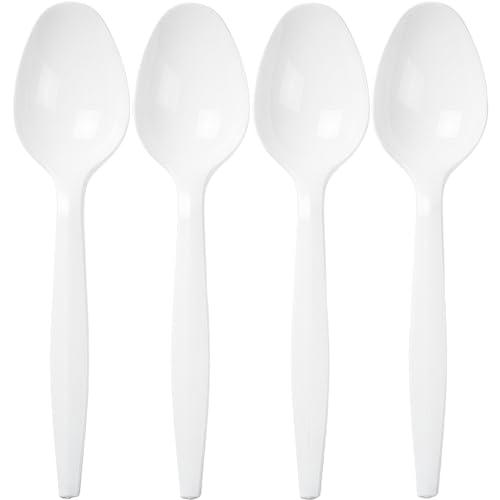 PAMI Bulk Plastic Spoons 1000 Count Disposable Medium Weight Sturdy Cutlery for Parties and Catering (Teaspoons Teaspoons White)