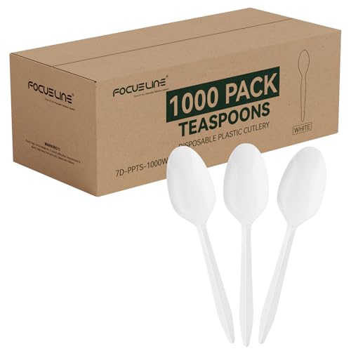 FOCUSLINE 1000 Pack Plastic Teaspoons White, Disposable Spoons Bulk, Heat Resistant Disposable Spoons for Take out Restaurants, Family Gatherings, Outdoor Activities