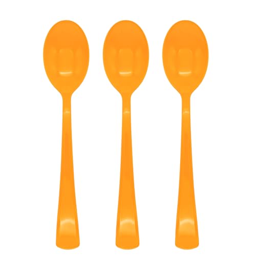 50 Pcs Orange Plastic Spoons Orange Plastic Silverware Disposable Cutlery Heavy Duty 50 Spoons for Birthday, Autumn, Halloween, Thanksgiving Day