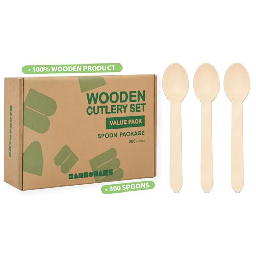 Wooden Spoons 300 Pieces | Natural Birch Wood Disposable Spoons | Biodegradable, Smooth & Durable for Parties, Coffee Shops, and Everyday Meals