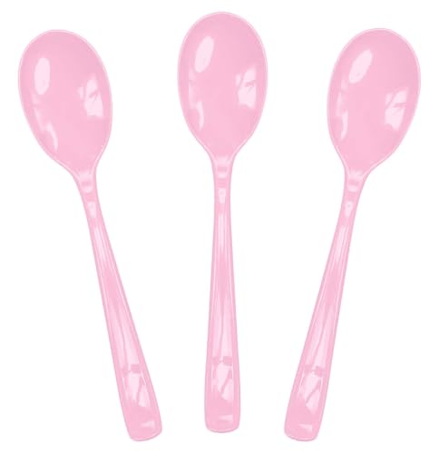 SietDESEO 25 PCS Light Pink Plastic Spoons Disposable Utensils Heavy Duty Baby Pink Spoons Disposable Cutlery for Birthday Wedding Baby Shower Bridal Shower Plastic Silverware