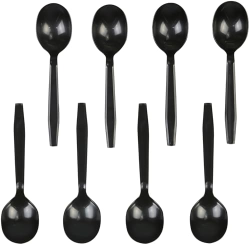 HeavyWeight Disposable Plastic Cutlery (Soup Spoons - Black, 100)