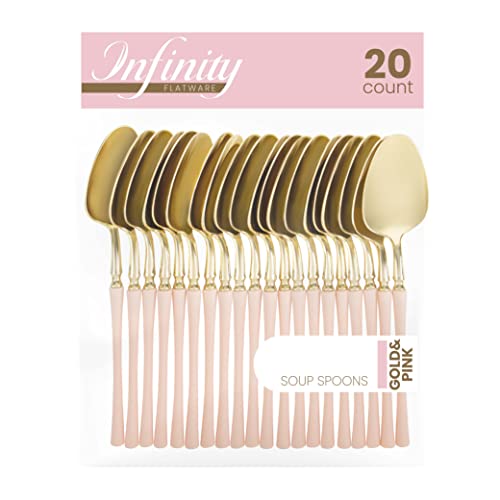 PlasticPro 20 Count Gold and Pink Plastic Soup Spoons Premium Quality Heavy Duty Disposable Elegant Silverware Two Tone Soup Spoons for Party