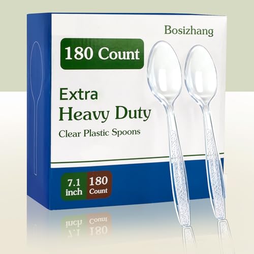 180 Count Plastic Spoons Heavy Duty, Premium Clear Disposable Spoons Heat Resistant & BPA Free, 7.1" Plastic Silverware for for Parties, Event and Daily Use
