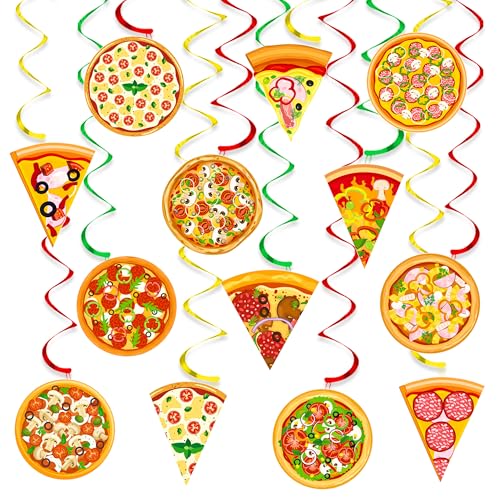 22pcs Pizza Party Hanging Swirls Pizza Party Decorations Pizza Party Time Hanging Decor Pizza Themed Ceiling Streamers for Fast Food Baby Shower Supplies
