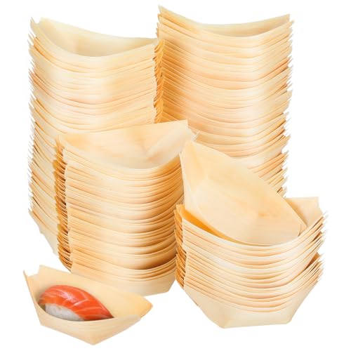 jojofuny 150pcs Disposable Bamboo Sushi Boat Plates for Appetizer - 3.3" Wooden Charcuterie Boat Leaf Small Sushi Serving Tray - Japanese Sashimi Plate Platter Snack Dish for Home Party Use