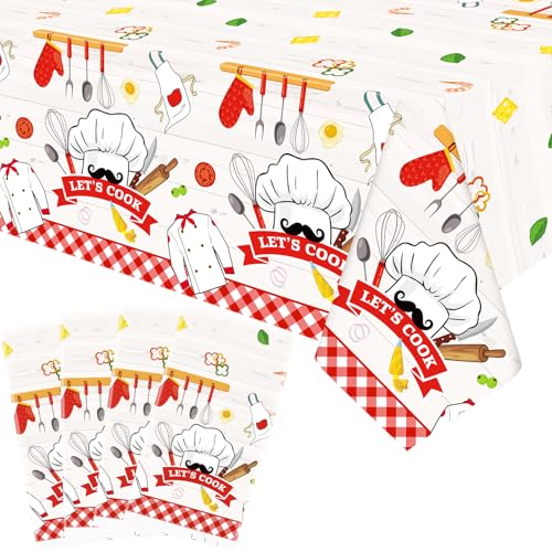 4 Pack Chef Party Tablecloth - Chef Party Table Cover Decoration Cooking Table Cloth Supplies, for Cook Cooking Kitchenware Birthday Supplies (51 x 86 Inches)