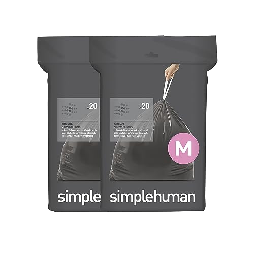 simplehuman Code M 40 Count, Genuine Odorsorb Custom Fit Liners, Drawstring Odor Absorbing Trash Bags in Dispenser Packs, 45 Liter / 12 Gallon