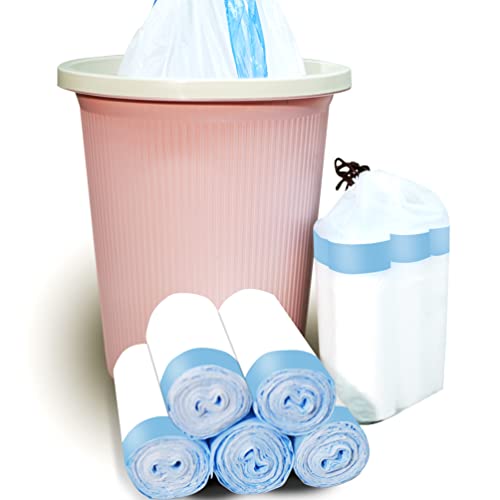 Trash Bags 3.2 Gallon, 100 Pcs Bathroom Garbage Bags, Blue Strap Kitchen Garbage Bags(White) With Drawstring Quickly Pack Garbage, Waste Basket Liners