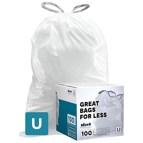 Plasticplace Custom Fit Trash Bags, Compatible with simplehuman Code U (100 Count) White Drawstring Garbage Liners 14.5-21 Gallon/ 55-80 Liter 26.5" x 32"