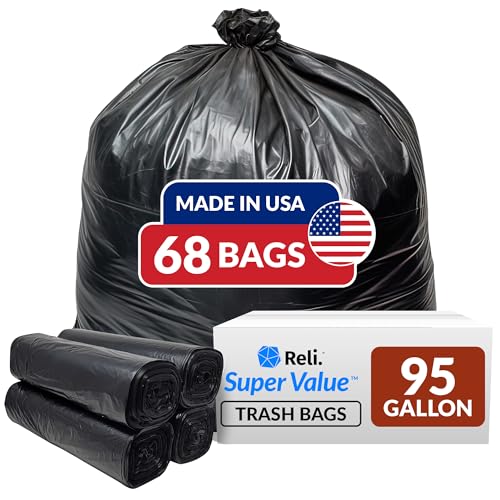 Reli. 95 Gallon Trash Bags Heavy Duty | 68 Trash Bags | Super Sizeable, Black, Garbage for Serious Cleanup