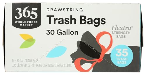 365 by Whole Foods Market, Flextra Strength Drawstring Trash Bags, 30 Gallon, 35 Count