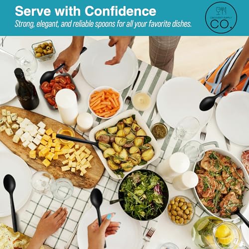 10" Black Plastic Serving Spoons for Buffet, Bulk 12 Count, Heavy Duty Disposable Spoon, Large Plastic Serving Utensils for Catering Supplies, Events, Party, Weddings & More - C&S Event Supply Co.