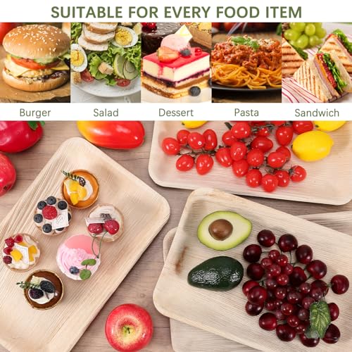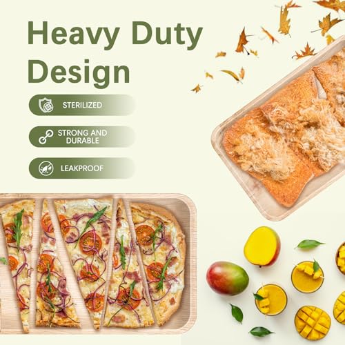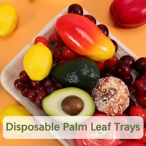 10 Pack Disposable Palm Leaf Trays,Bamboo Like Serving Platters,Disposable Charcuterie Boards,Rectangle Tray,Palm Leaf Plates,Eco-Friendly Platters for Weddings Catering (14" x 10")