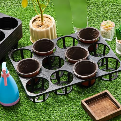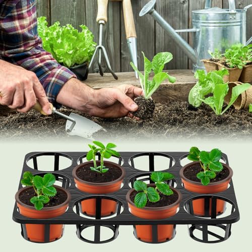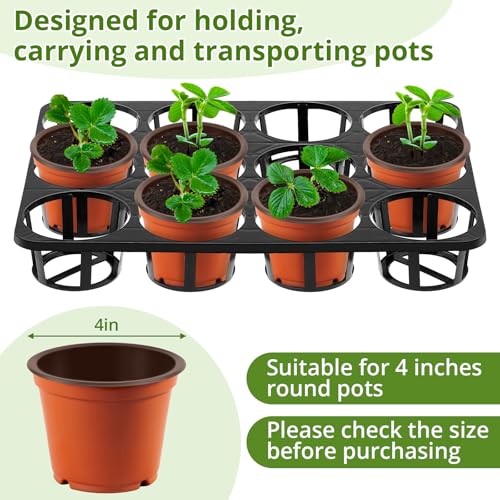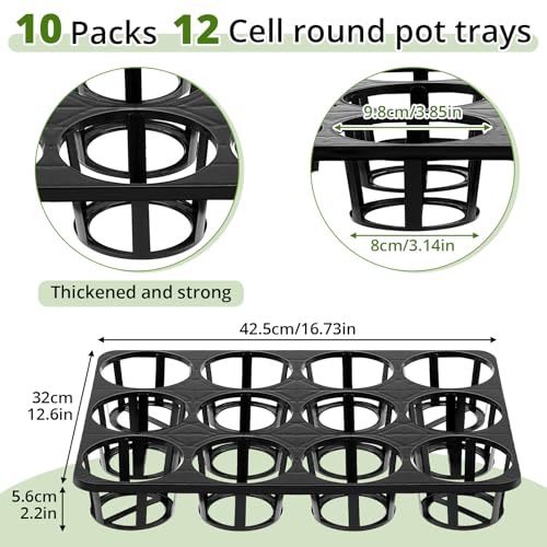 10 Pcs 12 Cell Nursery Planter Pots Trays 16.73" x 12.6" Plastic Pots Plant Tray for 4 Inch Round Nursery Planter Seedling Tray Flowerpot Carrier Transporting