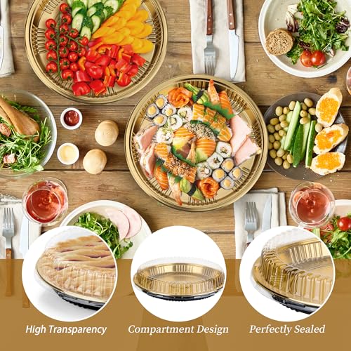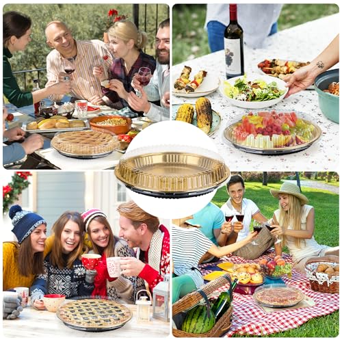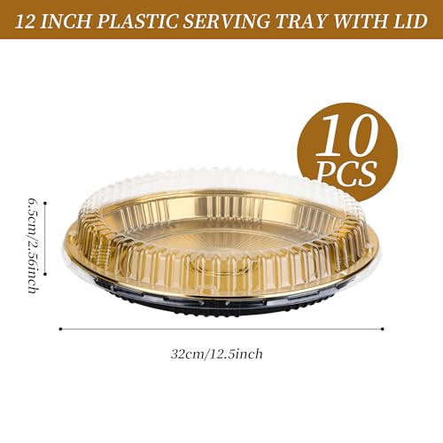 10 Pcs Disposable Pie Carrier with Clear Lid 12 Inch Round Pie Carrier Pies Holder with Lids for Cake Pizza Candy Salads Meal Prep, Gold