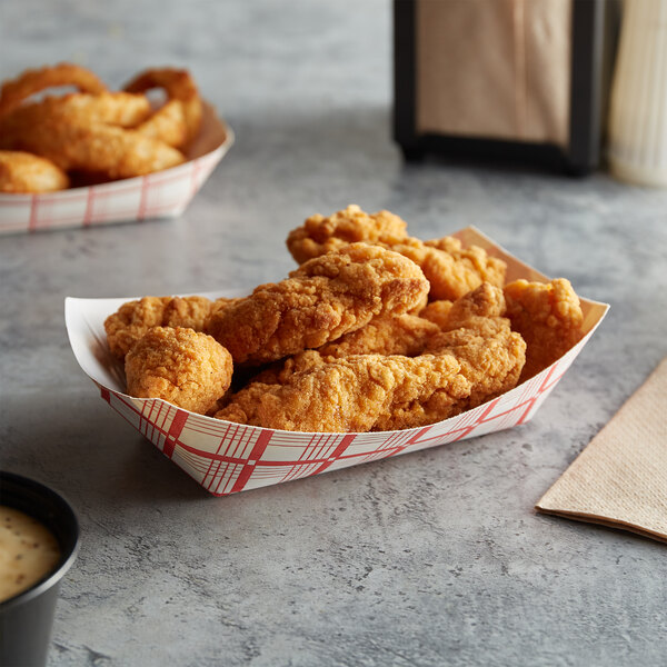 #100 1 lb. Red Plaid Paper Food Tray - 250/Pack