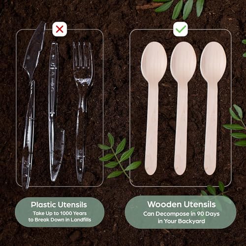 (100 Count) Disposable Wooden Spoons Set - Alternative to Plastic, Eco Friendly, Biodegradable, Compostable Cutlery Set - 100 Wood Spoons Disposable Set