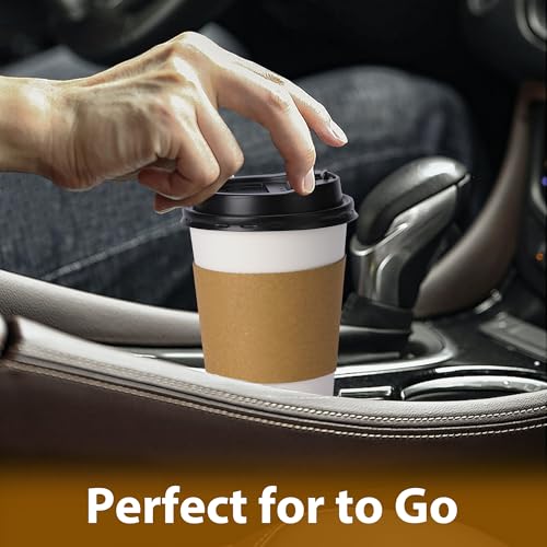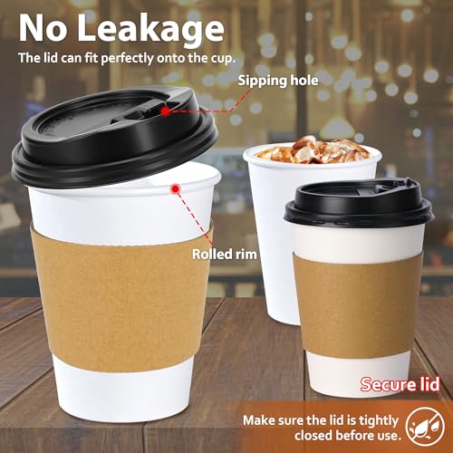 100 Pack 12 oz Disposable Coffee Cups with Lids and Insulated Sleeves, Leak-free Paper and Sturdy Thick Paper Hot to Go Coffee Cups with Lids for Cold/Hot Beverage (White)