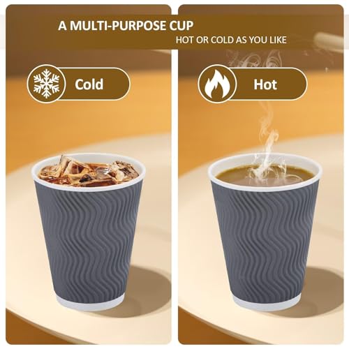 100 Pack 12 oz Disposable Coffee Cups with Lids, Insulated Ripple Wall To-Go Paper Coffee Cups Suitable for Chocolate Cocoa and Hot/Cold Drinks (Grey)