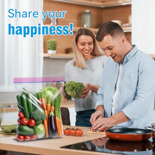 100-Pack Food Storage Freezer Bags - 3 Sizes, Reusable with Zipper Lock for Fruit and Veggies, Microwave and Freezer Safe, No BPA - Strong Seal, Easy to Fill for Lunch, Snacks, and Meals