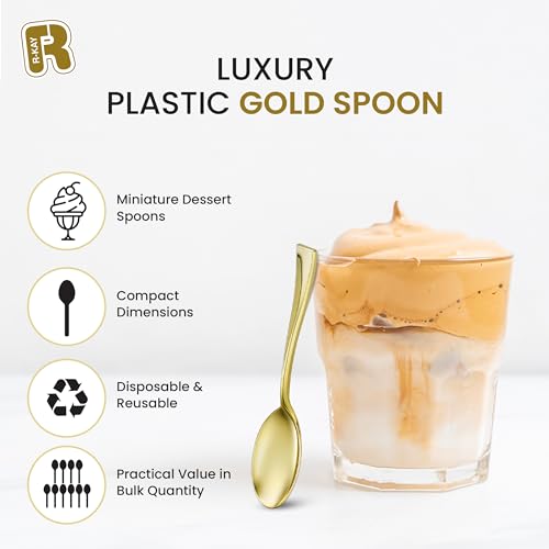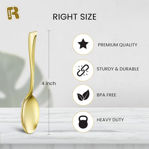 Posh Setting Plastic Mini Gold Spoons, 4 inch Gold Dessert Spoon Disposable, Small Plastic Spoons for Dessert, Tiny Little Appetizer Spoon Golden (80 Pack)