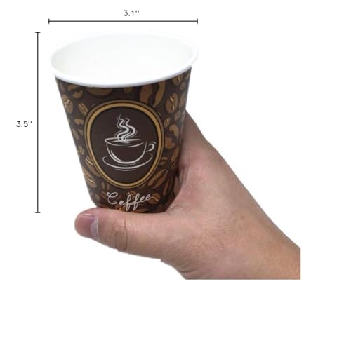 100 Pack Quality Disposable Paper Hot Drinks Cups with Lids, Perfect For Tea & Coffee Shops And Bars (8 oz, Coffee Bean Design)