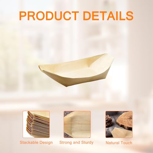 Brand Name: Voittozege | Color: Wood | Finish Types: Natural | Is the item dishwasher safe?: No | Is the item microwaveable?: Yes | Item Dimensions L x W x Thickness: 9.5"L x 5.9"W x 3.9"Th | Item Type Name: trays | Item Weight: 0.21 Kilograms | Material Type: Wood | Number of Pieces: 100 | Occasion Type: Birthday, Wedding | Other Special Features of the Product: Disposable | Pattern: Solid | Product Care Instructions: Disposable, do not wash. Can be thrown away after use. | Reusability: Disposable | Seasons: All Seasons | Shape: Boat | Size: Small | Style Name: Rustic | Unit Count: 100.0 Count