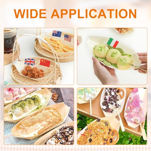 100 Pcs Bamboo Boat Plates Disposable Wooden Boat Plates, Leaf Sushi Serving Tray 5.5" x 3.2", Bamboo Appetizer Food Container for Appetizers
