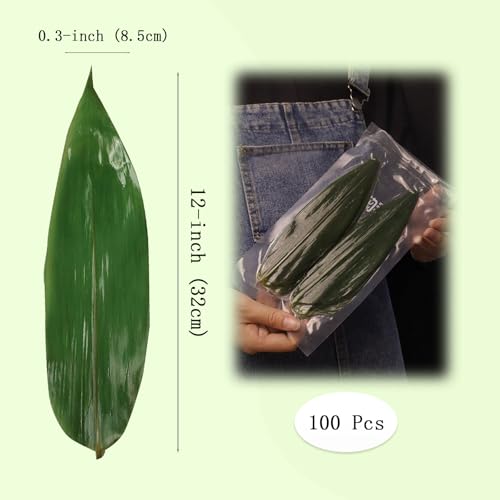 100 Pcs Fresh Bamboo Leaf Sushi Plate, 12 * 3-inch Large Size Sushi Mats, Chinese Dragon Boat Festival Snacks Wrapped in Leaves Party Leaf Plate Decor (32 * 8cm)