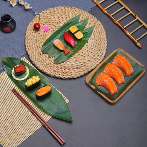 100 Pcs Fresh Bamboo Leaf Sushi Plate, 7 * 3-inch Large Size Sushi Mats, Chinese Dragon Boat Festival Snacks Wrapped in Leaves Party Leaf Plate Decor (18 * 8cm)