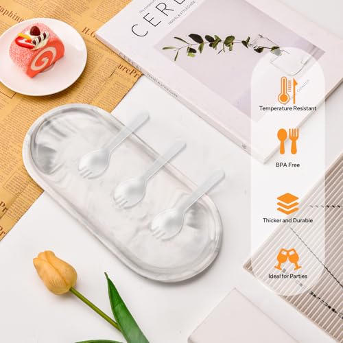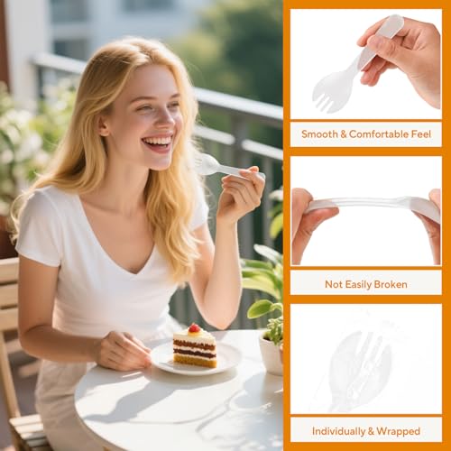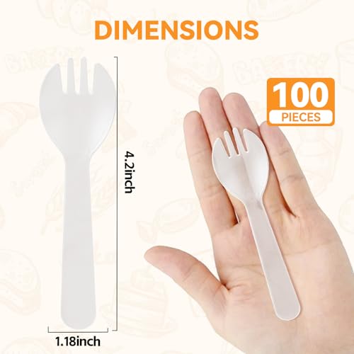 100Pcs Mini Clear Plastic Spork, 4.2 Inch Individually Wrapped Disposable Utensils, Small Fork Spoon Combo for Desserts, Ice Cream, Cakes, Fruit, To-Go & Party Use