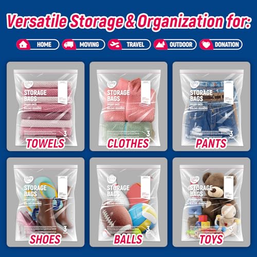 10PCS 3 Gallon Zipper Lock Storage Bags,16"x18",Reusable Extra Large Size Plastic Freezer Bag With Zip for Food,Clothing,Travel,Moving,BPA-Free,2-Mil Thick