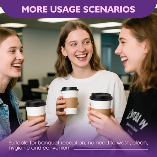 12 oz 100 Pack Disposable Coffee Cups with Lids and Sleeves, Coffee Paper Cups with Lids, To Go Beverage Drinking Cup for Coffee, Tea