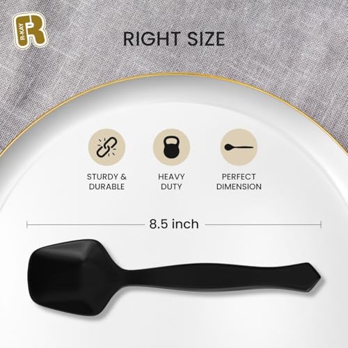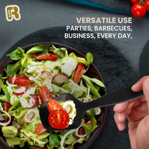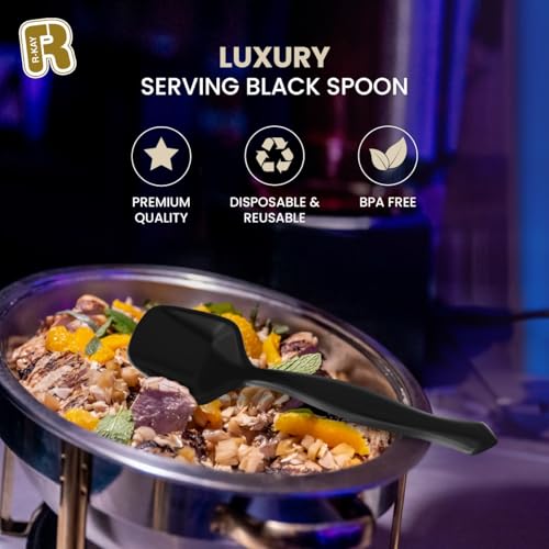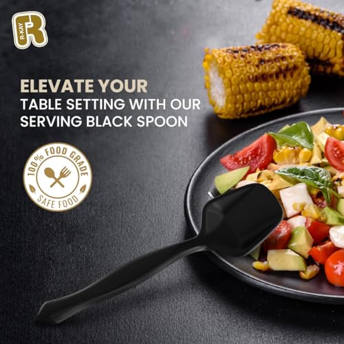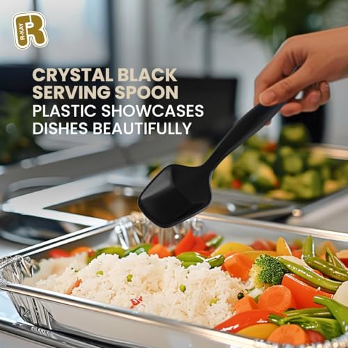 12 Pack Black Plastic Serving Spoons For Buffet 7.5 Inch - Black Plastic Serving Utensils For Hot And Cold Food - Disposable Serving Utensils For Parties, Holidays And Gatherings