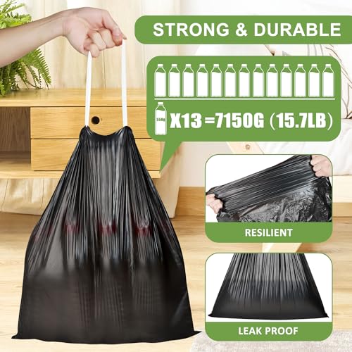 132 Count-Small Trash Bags, 4 Gallon Trash Bag Drawstring,Bathroom Garbage Bags,Tear-Free Garbage Bags ,Plastic Wastebasket Liners for Toilet Home Office and Bedroom(Black)